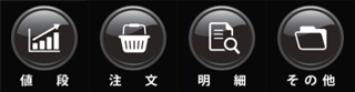 【値段】【注文】【明細】【その他】の4つのカテゴリーを使いこなせばチャート画面からワンタッチで発注画面や為替情報を切り替え表示することができます。