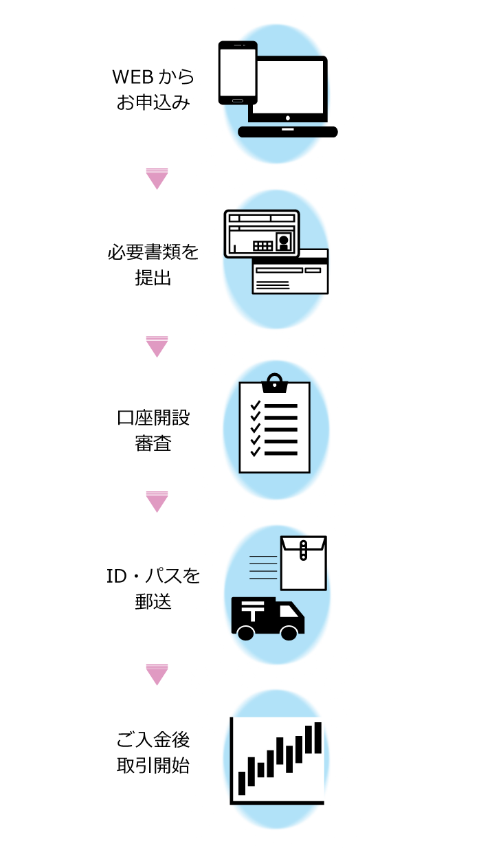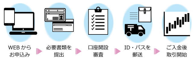 当社では口座開設フォーム入力や書類の交付など、口座開設手続きの大半をweb上で行なうことが出来ます。